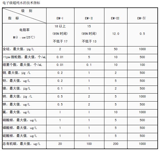 即將水中的導(dǎo)電介質(zhì)幾乎完全去除,又將水中不離解的膠體物質(zhì)、氣體及有機(jī)物均去除至很低程度的水。電阻率大于10~18.3MΩ*cm極限值?! 〕兯?/span>,是一般純水設(shè)備很難達(dá)到的程度,通常采用預(yù)處理、反滲透技術(shù)、超純化處理以及后級處理四大步驟,多級過濾、高性能離子交換(拋光)、超濾過濾器、紫外燈、除TOC裝置等多種處理方法,電阻率方可達(dá)18.25MΩ*cm