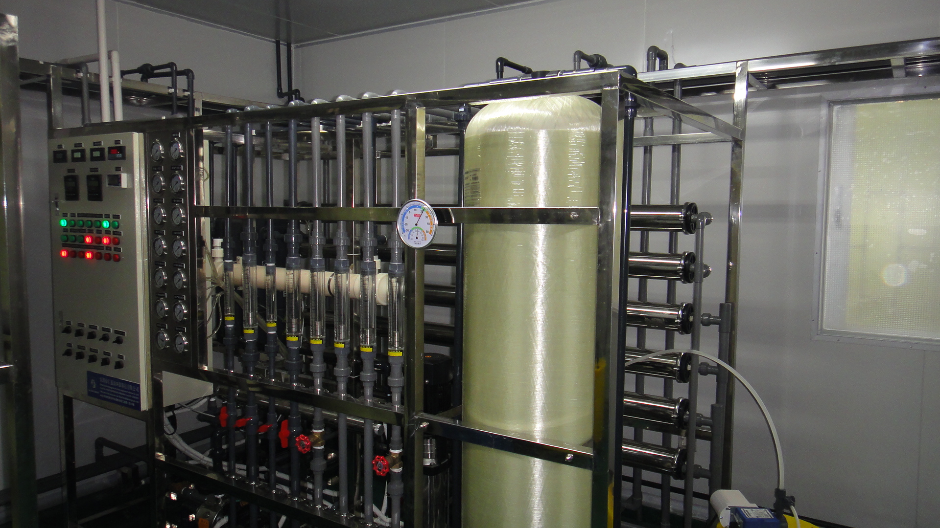 3、第三種采用反滲透作預(yù)處理再配上電去離子(EDI)裝置,這是目前制取超純水最經(jīng)濟(jì),最環(huán)保用來制取超純水的工藝,不需要用酸堿進(jìn)行再生便可連續(xù)制取超純水,對環(huán)境沒什么破壞性。其缺點(diǎn)在于初投資相對以上兩種方式過于昂貴。