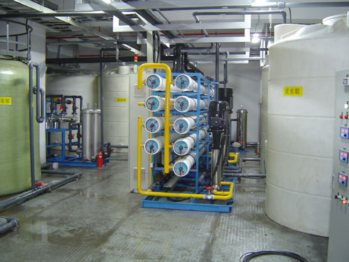 2、第二種采用反滲透作為預(yù)處理再配上離子交換設(shè)備,其特點為初投次比采用離子交換樹脂方式要高,但離子設(shè)備再生周期相對要長,耗費的酸堿比單純采用離子樹脂的方式要少很多。但對環(huán)境還是有一定的破壞性。